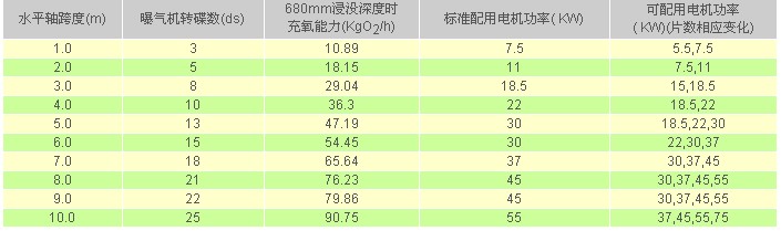 單片充氧動(dòng)力效率(以軸功率計(jì)): 2.85kg 0 2/kw.h