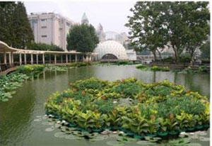 二.現(xiàn)行河道、湖泊采用的水生植物浮島主要特點、方式分析: