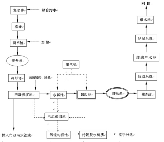 設(shè)計處理要求:3500噸/天處理到CODcr≤ 30 mg/ L進(jìn)行回用,3500噸/天以CODcr≤ 1000mg/ L的指標(biāo)排放。