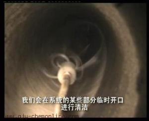 由高壓氣帶動(dòng)的清洗頭可以在管道內(nèi)自動(dòng)向前或向后運(yùn)行幾十米, 在熟練技師的操縱下可以更可以在彎道運(yùn)行, 并不受管徑的限制,