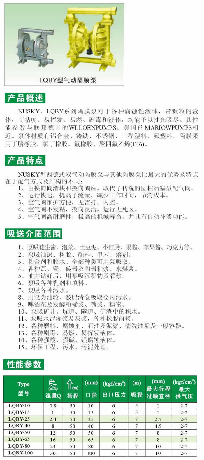 廣州南方泵業(yè) LQBY/LQBK型氣動隔膜泵