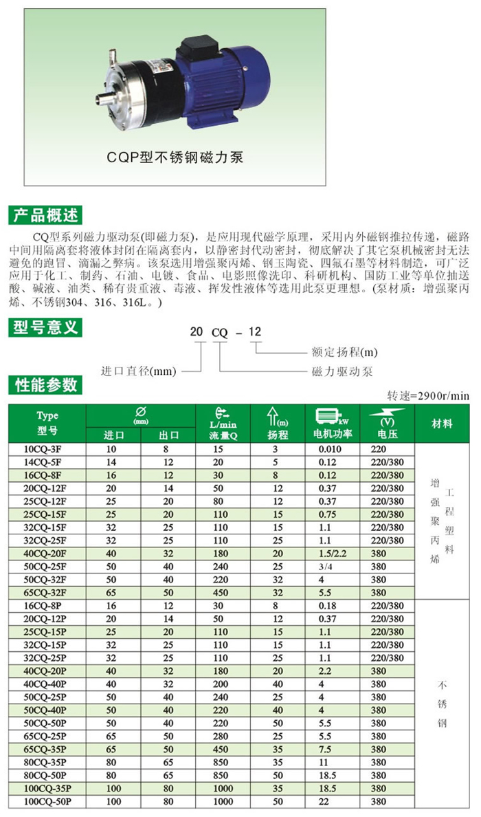 廣州南方泵業(yè) CQP型不銹鋼磁力泵