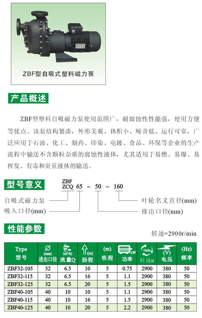 廣州南方泵業(yè) ZBF自吸式塑料磁力泵