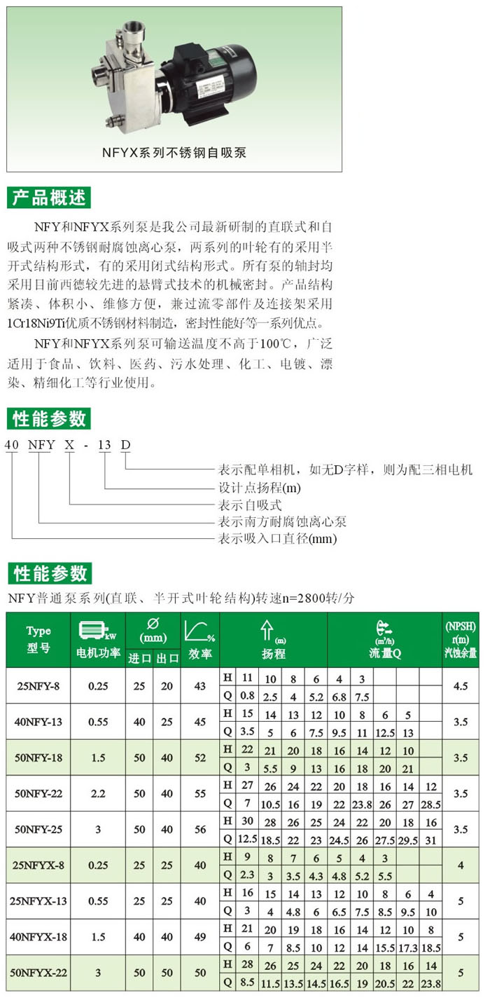 廣州南方泵業(yè) NFYX系列不銹鋼耐腐蝕離心泵