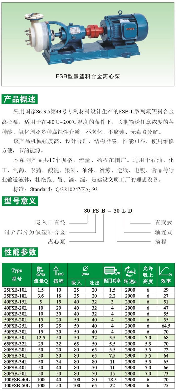 廣州南方泵業(yè) FSB型氟塑料合金離心泵