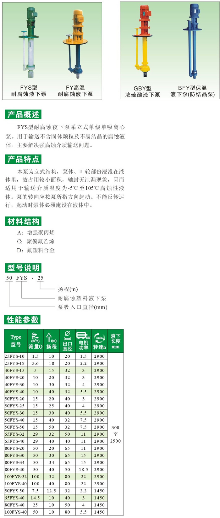 廣州南方泵業(yè) FYS耐腐蝕液下泵