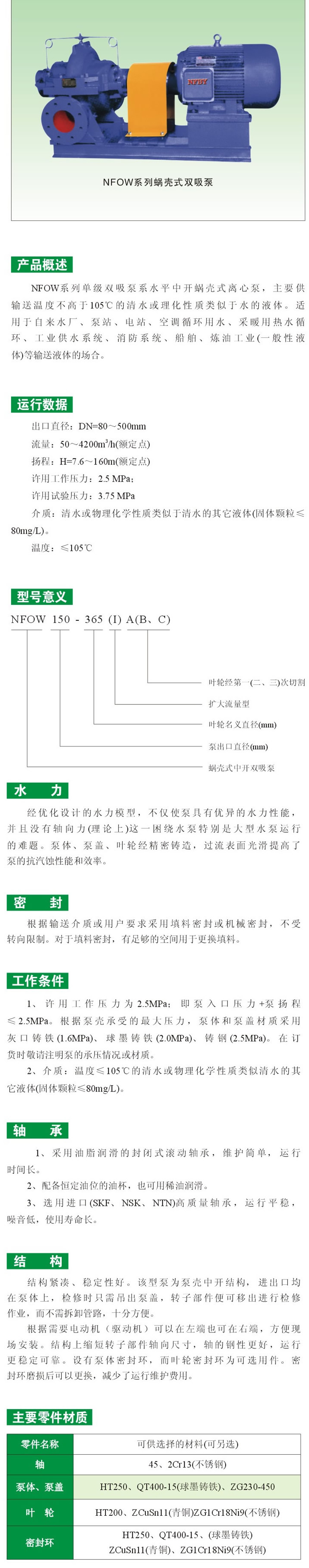 廣州南方泵業(yè) NFOW系列蝸殼式單級雙吸泵