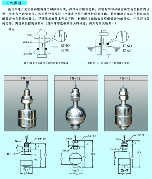 浮球開關(guān)是一種結(jié)構(gòu)簡(jiǎn)單,使用方便的液位控制器件,它不需要電源,沒有復(fù)雜的電路,它具有比一般機(jī)械開關(guān)體積小,工作壽命長(zhǎng)等優(yōu)點(diǎn)。選型時(shí)只要材質(zhì)選用正確,任何性質(zhì)液體或壓力,溫度皆可使用,并在造船工業(yè)、發(fā)電機(jī)設(shè)備,石油化工,食品工業(yè),水處理設(shè)備,柒整工業(yè),油壓,機(jī)械等方面都得到了廣泛的應(yīng)用。