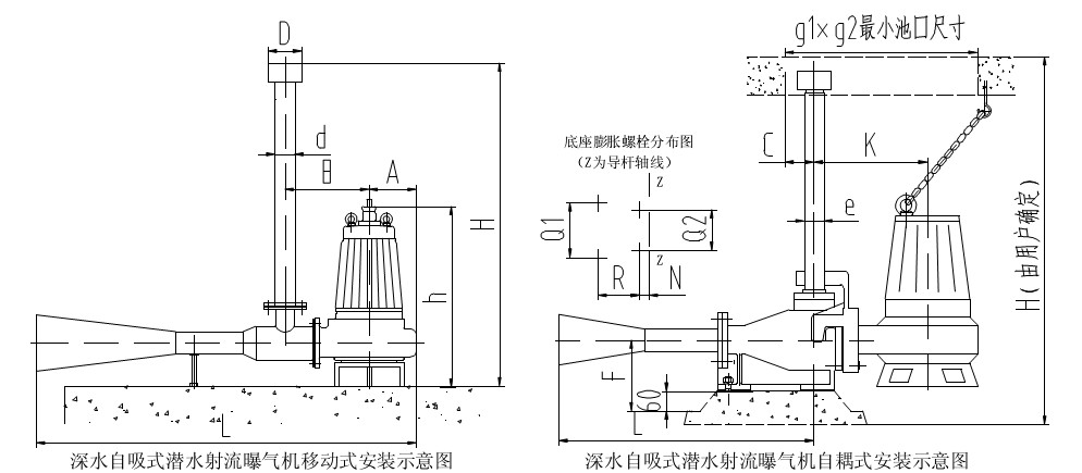 深水自吸式潛水射流曝氣機(jī)移動(dòng)式安裝尺寸: