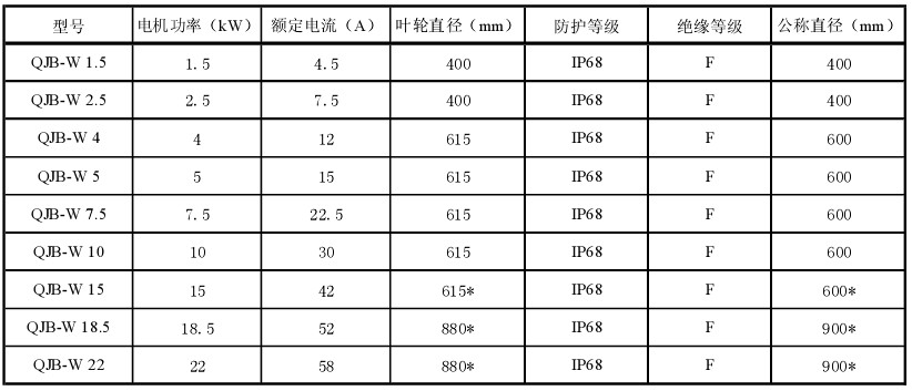 - 電機(jī):50Hz鼠籠式3相潛水異步電動機(jī),F(xiàn)級絕緣,防護(hù)等級IP68。電機(jī)由周圍介質(zhì)冷卻;