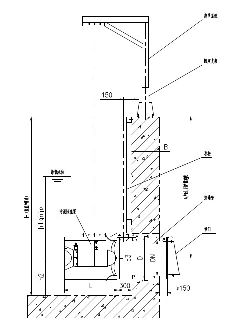 3.本設(shè)備除穿墻管需要預(yù)埋件外,導(dǎo)桿、起吊架均用鋼膨脹螺栓與池體連接,不需要預(yù)埋件。