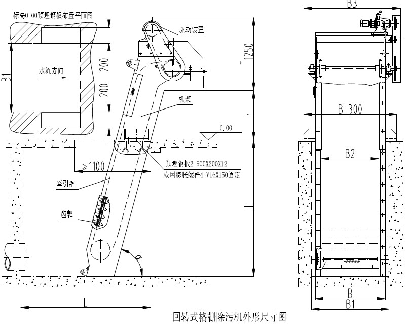該設(shè)備是由ABS工程塑料、尼龍或不銹鋼制成的特殊形耙齒,按一定的排列次序裝配在耙齒上形成閉式耙齒鏈,其下部安裝在進(jìn)渠水體中。當(dāng)傳動(dòng)系統(tǒng)帶動(dòng)鏈輪作勻速定向旋轉(zhuǎn)時(shí),整個(gè)耙齒鏈便自上而下運(yùn)動(dòng),并攜帶固體雜物從液體中分離出來(lái),流體則通過(guò)耙齒的柵隙流過(guò)去,整個(gè)工作狀態(tài)連續(xù)進(jìn)行。