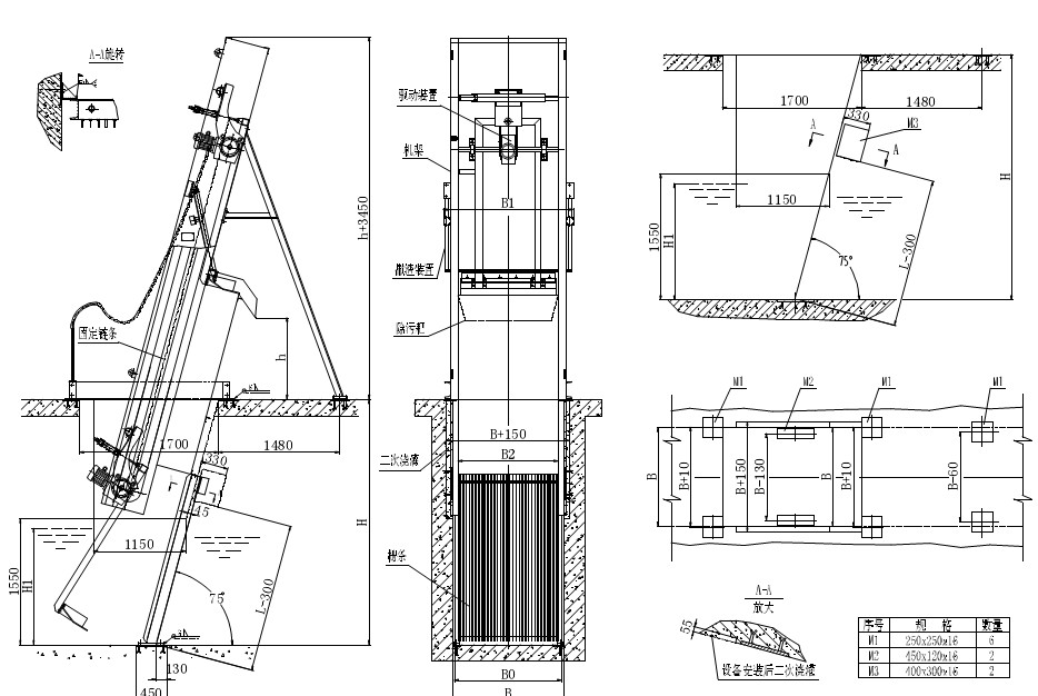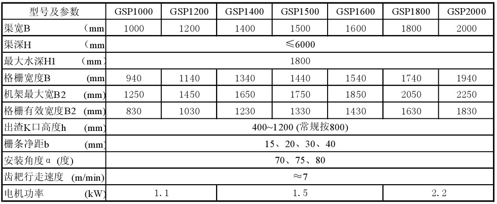 c) 除格柵部件、齒耙在柵條部位除污時(shí)外,其它部位均在正常最高水位以上,不易腐蝕,便于維護(hù);