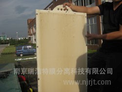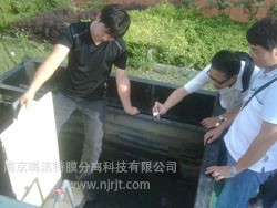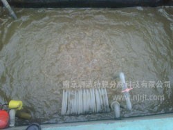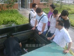 來源:南京瑞潔特膜分離科技有限公司 閱讀:1979 更新時間:2011-07-01 17:372011年06月24日,上海某企業(yè)蒞臨南京瑞潔特膜分離科技有限公司,對南京瑞潔特公司雙疊式平板膜生產(chǎn)狀況及產(chǎn)品性能進(jìn)行全面考察。在南京瑞潔特技術(shù)負(fù)責(zé)人及客戶經(jīng)理陪同下,首先考察了我公司生產(chǎn)車間,對平板膜的生產(chǎn),平板膜組件的安裝、檢測以及后期維護(hù)進(jìn)行了深入的交流,隨后現(xiàn)場觀摩了我公司膜生物反應(yīng)器中試裝置,對膜生物反應(yīng)的運行進(jìn)行了詳細(xì)的觀察,對污泥生物活性,出水水質(zhì),污泥性狀深入的觀察與分析,同時觀察了機(jī)電設(shè)備個儀表的具體指示情況,最后現(xiàn)場對中試裝置進(jìn)行降水,檢驗?zāi)そM件數(shù)量,與對應(yīng)出水量進(jìn)行核算,測算時間運行通量,以及與真空度進(jìn)行對比,一致確認(rèn)南京瑞潔特膜組件在2個月的運行時間內(nèi)仍保持25L/m2.h膜通量運行,同時現(xiàn)場對平板膜組件進(jìn)行拆卸,觀察膜表面污染情況,從現(xiàn)場可以看出平板膜表面在2個月的運行時間內(nèi)沒有發(fā)生膜表面污染,表現(xiàn)極其穩(wěn)定的性能。