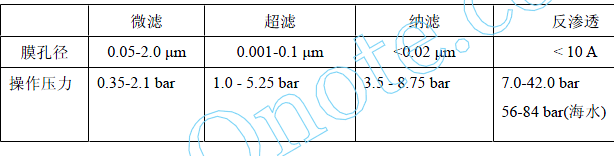 膜分離技術(shù)是一大類(lèi)技術(shù)的總稱(chēng)。和水處理有關(guān)的主要包括微濾、超濾、鈉濾和反滲透等幾類(lèi)。這些膜分離產(chǎn)品均是利用特殊制造的多孔材料的攔截能力,以物理截留的方式去除水中一定顆粒大小的雜質(zhì)。其過(guò)濾的精度和濾膜本身的孔徑大小有關(guān)。通常習(xí)慣把孔徑較大的稱(chēng)為微濾(Microfiltration),而較小的稱(chēng)為超濾( Ultrafiltration),而“孔徑”更小則是鈉濾和反滲透。