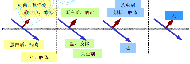 這些分離膜的“孔徑”和分離的對(duì)象如下表和下圖所示: