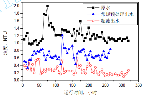 1. 超濾作為反滲透的預(yù)處理,以濟(jì)南地區(qū)黃河水作為原水,在技術(shù)上是可行的;