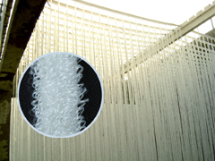 這是一種全新的纖維膜生物載體,這種載體具有很大的比表面積。由于此種填料不需要借助任何外加的機械設(shè)施便可在水中不斷擺動和波動,多余的生物量會自然脫落,不斷更新表面。載體由復(fù)合纖維制成,可以抗污水和化學(xué)物的侵蝕,而其特殊的安裝結(jié)構(gòu),又能防止由于微生物膜的生長而引起的填料斷裂和粘結(jié)。通過控制剪力可以使掛上的生物膜具有自清作用,保證了微生物最大的繁殖力并提高其代謝率。載體填料的適用性很強,幾乎適用于各種類型的污水處理廠和生物反應(yīng)器。模塊式的設(shè)計使這種填料既易于在污水處理廠擴容項目中使用,也易于建造新的污水處理設(shè)施。