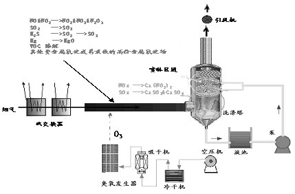 本公司多種污染物協(xié)同脫除技術(shù)原理是:利用臭氧氧化鍋爐煙氣中不溶于水的污染物如NO、SO2、Hg等,使其成為易溶于水的NO2,SO3,Hg2+同時降解微量的揮發(fā)性有機(jī)物(VOC)以及降低二噁英和微量重金屬價態(tài)(Pb,As等)的毒性,進(jìn)而結(jié)合尾部水洗或者堿液吸收同時脫除多種污染物。其主要反應(yīng)機(jī)理為: