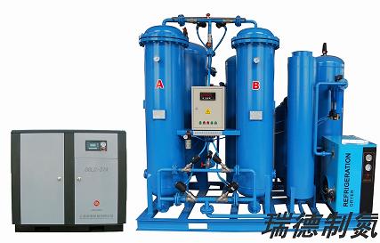 RDN系列制氮機(jī)是根據(jù)變壓吸附原理,采用高品質(zhì)的碳分子篩作為吸附劑,在一定的力學(xué)效應(yīng),氧在碳分子篩微孔中擴(kuò)散速率遠(yuǎn)大于氮,在吸附未達(dá)到平衡時(shí),氮在氣相中被富集起來(lái),形成成品氮?dú)。然后減壓至常壓,吸附劑脫附所吸附的氧氣等其它雜質(zhì),實(shí)現(xiàn)再生。一般在系統(tǒng)中設(shè)置兩個(gè)吸附塔,一塔吸附產(chǎn)氮,另一塔脫附再生,通過(guò)PLC程序自動(dòng)控制,使兩塔交替循環(huán)工作,以實(shí)現(xiàn)連續(xù)生產(chǎn)高品質(zhì)氮?dú)庵康。壓力下,?jīng)過(guò)凈化干燥的壓縮空氣,在吸附器中進(jìn)行加壓吸附、減壓脫附。