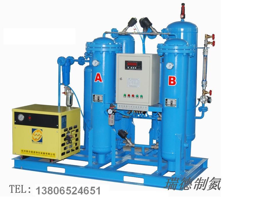 RDN系列制氮機(jī)是根據(jù)變壓吸附原理,采用高品質(zhì)的碳分子篩作為吸附劑,在一定的力學(xué)效應(yīng),氧在碳分子篩微孔中擴(kuò)散速率遠(yuǎn)大于氮,在吸附未達(dá)到平衡時(shí),氮在氣相中被富集起來(lái),形成成品氮?dú)。然后減壓至常壓,吸附劑脫附所吸附的氧氣等其它雜質(zhì),實(shí)現(xiàn)再生。一般在系統(tǒng)中設(shè)置兩個(gè)吸附塔,一塔吸附產(chǎn)氮,另一塔脫附再生,通過(guò)PLC程序自動(dòng)控制,使兩塔交替循環(huán)工作,以實(shí)現(xiàn)連續(xù)生產(chǎn)高品質(zhì)氮?dú)庵康。壓力下,?jīng)過(guò)凈化干燥的壓縮空氣,在吸附器中進(jìn)行加壓吸附、減壓脫附。