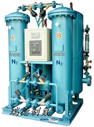 RDN系列制氮機(jī)是根據(jù)變壓吸附原理,采用高品質(zhì)的碳分子篩作為吸附劑,在一定的力學(xué)效應(yīng),氧在碳分子篩微孔中擴(kuò)散速率遠(yuǎn)大于氮,在吸附未達(dá)到平衡時(shí),氮在氣相中被富集起來(lái),形成成品氮?dú)。然后減壓至常壓,吸附劑脫附所吸附的氧氣等其它雜質(zhì),實(shí)現(xiàn)再生。一般在系統(tǒng)中設(shè)置兩個(gè)吸附塔,一塔吸附產(chǎn)氮,另一塔脫附再生,通過(guò)PLC程序自動(dòng)控制,使兩塔交替循環(huán)工作,以實(shí)現(xiàn)連續(xù)生產(chǎn)高品質(zhì)氮?dú)庵康摹毫ο,?jīng)過(guò)凈化干燥的壓縮空氣,在吸附器中進(jìn)行加壓吸附、減壓脫附。