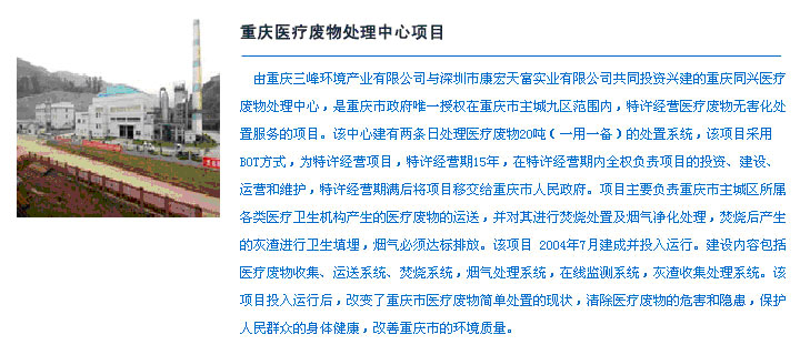 | 項目名稱 | 重慶醫(yī)療廢物處理中心項目 | ||||