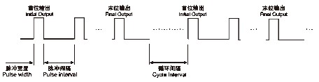 控制儀輸出一個電信號持續(xù)時間,稱為脈沖寬度?刂苾x輸出二個電信號之間的間隔時間,稱為脈沖間隔?刂苾x輸出電信號完成一個循環(huán)所需要的時間,稱為脈沖周期。