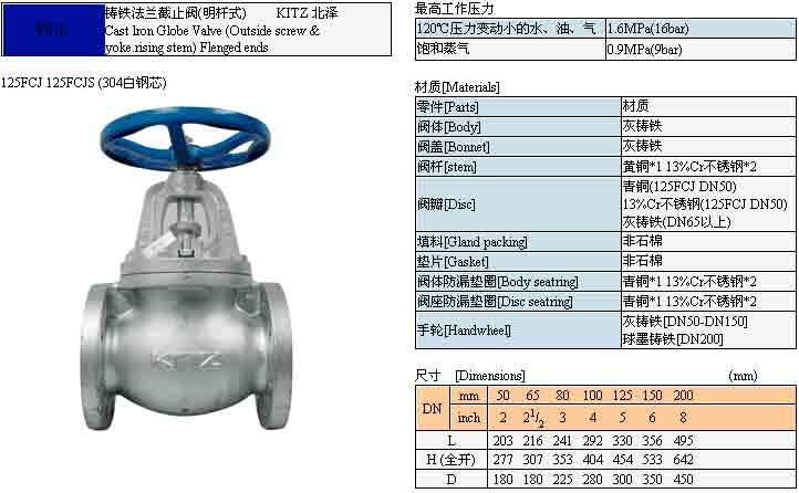 KITZ 北澤鑄鐵法蘭截止閥(明桿式)
