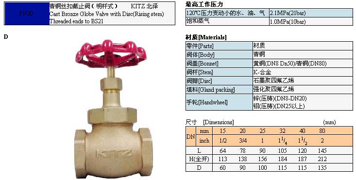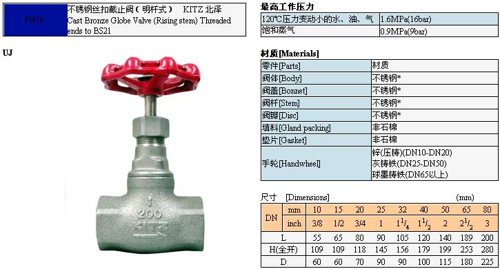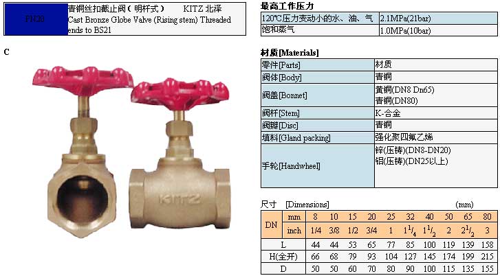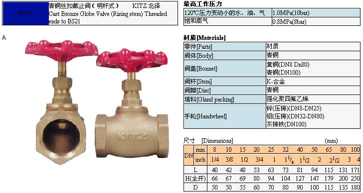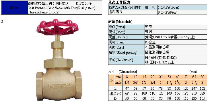 KITZ 北澤青銅絲扣截止閥(明桿式)