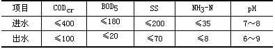 | 表1 進、出水水質(zhì)設(shè)計指標(mg/L) |