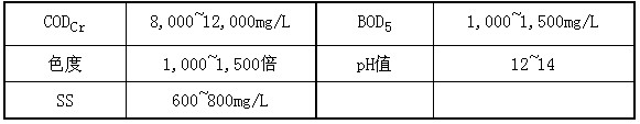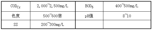第三類為漂白廢水,其CODCr值很低,一般不超過150 mg/L,并含有少量的氧化劑。三種水混合后其CODCr為2,000~2,500mg/L,呈堿性。
