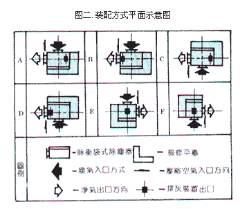 (2)本除塵器的進(jìn)出風(fēng)口及排灰裝置出口按不通方式組成6種裝配方式,設(shè)計(jì)者可按需要選擇.