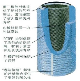 1. 采用美國BHA公司生產(chǎn)的專用于除塵、空氣過濾的復(fù)合纖維濾材,可將更多的塵粒阻擋于濾筒表面,并有阻燃濾料供選擇;
