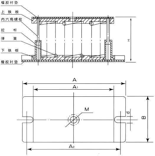 CTE型預(yù)應(yīng)力組合彈簧隔振器為開敞式結(jié)構(gòu),上下端面粘貼橡膠襯墊。可通過固定孔連接上下端面,也可直接放置在隔振臺(tái)座與支承結(jié)構(gòu)之間。因此,具有結(jié)構(gòu)合理、性能穩(wěn)定、使用方便等特點(diǎn),特別適用于風(fēng)機(jī)、水泵、空調(diào)機(jī)組等機(jī)械設(shè)備的隔振,對(duì)大型機(jī)械設(shè)備的隔振,可按用戶要求特殊設(shè)備供給。