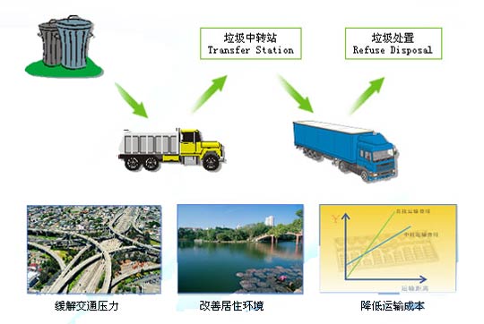 中轉(zhuǎn)站通過先進(jìn)的接收壓縮裝置,使散裝垃圾壓縮裝箱后清潔高效的外運(yùn),改變了垃圾露天堆放、轉(zhuǎn)運(yùn)等嚴(yán)重污染環(huán)境的原始狀況,避免了垃圾運(yùn)輸過程中的遺灑。同時(shí)考慮到對(duì)周邊環(huán)境和內(nèi)部工作條件的影響,中轉(zhuǎn)站對(duì)粉塵、臭氣、污水、等采取了積極的防護(hù)措施。另外可針對(duì)垃圾特點(diǎn)和垃圾處置需要,增設(shè)垃圾預(yù)處理環(huán)節(jié),擴(kuò)展中轉(zhuǎn)站的功能并提高運(yùn)作效率。