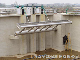 SHBSQ潷水器是排出SBR反應(yīng)池中上清液的專用設(shè)備。水天螺桿旋轉(zhuǎn)式潷水器通過可變速的螺旋傳動裝置的驅(qū)動,潷水堰槽繞排水管轉(zhuǎn)動,實現(xiàn)潷水器追隨水位連續(xù)排水。