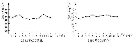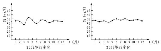 對2002年和2003年排放水COD、TSS、BOD和pH的月度平均值我們進(jìn)行取樣分析。對COD和TSS如下圖2和圖3所示,BOD和pH如表四所示。