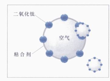 2) 黏合劑中探出頭的二氧化鈦,經(jīng)過紫外線的照射后,更好地發(fā)揮其很大的分解作用。