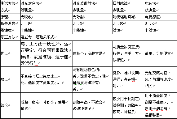 目前得到廣泛應用連續(xù)監(jiān)測系統(tǒng)以下幾種:不透明度(濁度)測塵儀、散射光測塵儀、射線吸收法