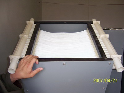 其基本原理市利用中空纖維膜代替?zhèn)鹘y(tǒng)的二沉池,在生化反應(yīng)池內(nèi),污水透過(guò)孔徑為0.03-0.2um中空纖維膜時(shí),細(xì)菌及大部分懸浮物、病毒被截留下來(lái);從而使活性污泥濃度大大增加,使降解污水的生化反應(yīng)進(jìn)行的更迅速、更徹底;泥齢更長(zhǎng),產(chǎn)你量大大減少,高精度的中空纖維膜過(guò)濾后的出水,其水質(zhì)全面優(yōu)于國(guó)家生活雜用水水質(zhì)標(biāo)準(zhǔn)。