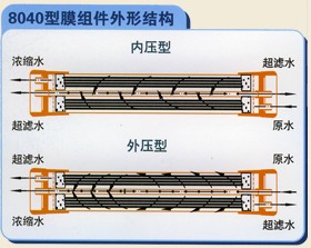 ◆ 中空纖維超濾膜與外殼融為一體,外形與反滲透組件類似,但結(jié)構(gòu)簡單,造價較低。