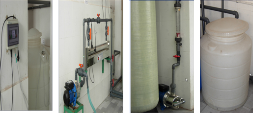 紫外消毒部分、出水泵及再生泵及再生系鹼罐