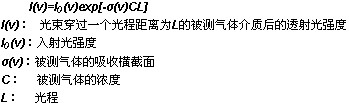 LasIRTM系統(tǒng)的定量分析是以Beer-Lambert定律為基礎(chǔ),Beer-Lambert定律指出了光吸收與光穿過被檢測的物質(zhì)之間的關(guān)系,當一束頻率為V的光束穿過吸收物質(zhì)后,在其穿過的光徑上的光強變化為: