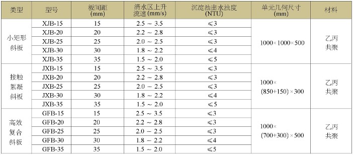 主體及零配件均由乙丙共聚材料制成。 在淺層理論的基礎上,在斜板上部設置沉淀距離合理的沉淀段,在下部控制斜板的幾何形狀,使斜板下部形成穩(wěn)定的接觸絮凝段,通過接觸作用和淺池沉淀機理達到礬花與水分離的目的。 按構(gòu)造型式可分為: