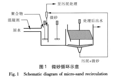 粒徑約為100~150µm的微砂投到投加池中,微砂循環(huán)和補充可以增加凝聚的幾率,確保絮狀物的密度,以增加絮體形成和沉淀的速度。