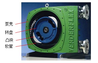 工業(yè)軟管泵主要是由以下四個(gè)部件組成:泵殼,轉(zhuǎn)盤,凸塊,軟管組成。