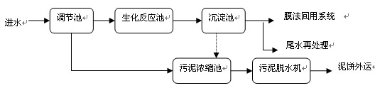 膜法廢水深度處理及回用系統(tǒng)工藝流程: