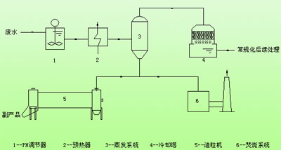 該技術(shù)通過蒸發(fā)濃縮最大限度地使水與有機(jī)物及鹽類分離,濃縮后的有機(jī)物或生產(chǎn)副產(chǎn)品或焚燒,蒸餾液由于污染物濃度較低,且BOD/COD顯著升高,可進(jìn)行常規(guī)化處理。