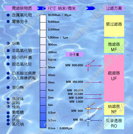 在純水處理、尤其是超純水處理工藝中,各種膜處理工藝被廣泛地使用。不同的過濾器能濾除對(duì)應(yīng)的雜質(zhì)。